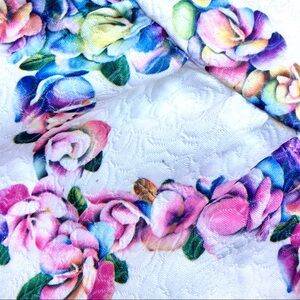 NWT Mini skirt in ivory jacquard with pastel floral lattice print, ruffle hem and elastic waist. Fit & flare circle silhouette. Hues are reminiscent of dyed eggs 🐰🐣🌷Woven polyester. Unlined, opaque. Hand wash. Imported. By Lucca Couture from Nordstrom. A few faint marks, purchased as such, see images. Props NFS