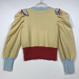 Ruffle Front Sweater Listicle Yellow Long Sleeve Cropped Puff Sleeve Large