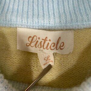 Add a pop of color to your wardrobe with this Listicle sweater in a vibrant yellow hue. The tight-knit design features a crew neckline and long sleeves with puff sleeves, giving it a playful and feminine touch. The ruffle front adds an accent that is both charming and stylish, making it perfect for any occasion. Hand wash only to maintain its quality. Ideal for winter, fall, and spring, this sweater is a must-have for any fashion-forward woman. This sweater is perfect for those who love coquette, Barbiecore, girlie, and feminine themes. It comes in a regular fit and is available in size L. The sweater is made of knit fabric and has a multicolor exterior. The features of this sweater include ruffles, making it a unique and fun addition to any wardrobe. This sweater is perfect for anyone who wants to add a touch of playfulness to their outfit.