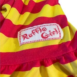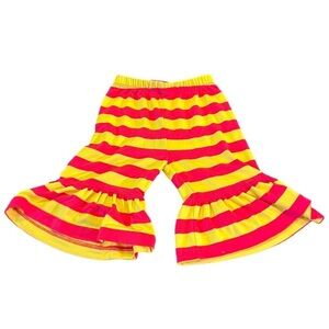 Girls 18 Months Ruffle Girl Pink and Yellow Flare Pants. Ruffle Girls patch on front leg. Great condition. Can be part of a Halloween costume or fun casual wear. Great condition.