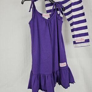 Ruffle Girl Purple White Striped Pants Girls Size 7 Solid Tank Summer Cute