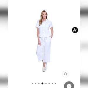 A feminine twist on a classic favorite, this solid slub woven jean jacket brings effortless charm to any look. Crafted from a breathable rayon-linen blend, it features soft ruffle details at the short sleeves and hem for a playful edge. Finished with two front pockets and a texture fell, this lightweight jacket is the perfect layering piece for sunny days and cool evenings.