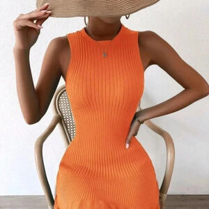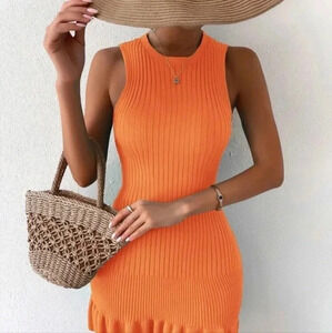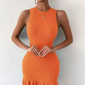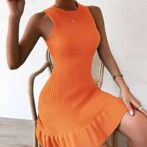 Ruffle Hem RibbedKnit Sweater Dress Without Belt