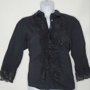 Ruffle Lace Front Shirt Size 2X Black Button-up Top Lace Trim Cuff Steampunk