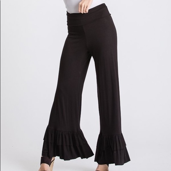 Heimish soft stretchy fold over wide leg solid ruffle pants