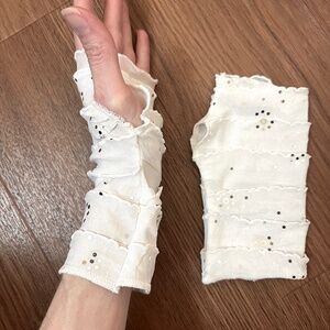 Ruffle Sequin Fingerless Gloves White Mummy Hand Warmers Bandage Covers Wraps OS