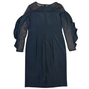 Ruffle Sheer Illusion Little Black Dress Classic Minimal 10 Petite Luxury R&M Richards NEW WITH TAGS