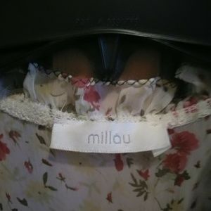 Adorbs sheer floral fabric with hunter green trim and tie.