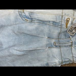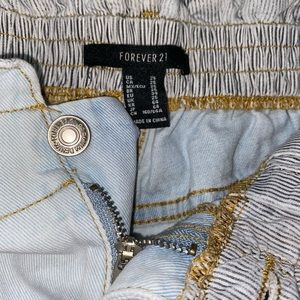 Ruffle top, pleats on front, denim shorts, excellent condition, functional zipper & button, US-25 , light wash