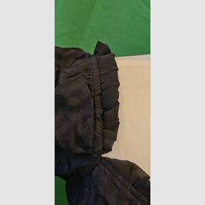 * Description: Playful sweetheart tie neckline design, black stripe on black, lined, ruffled short sleeves, with concealed zipper on the side for added convenience. Suitable for parties, cocktail parties, dates, everyday, office, etc. Store return. No tags attached