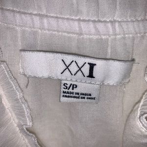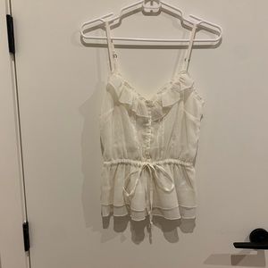 Cute feminine ruffle tank with adjustable straps and front tie. Ivory. Excellent condition.