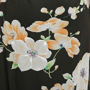 Black multi-color ruffle tier floral halter maxi dress. Cut away shoulder high neck dress. Keyhole back with button closure. Blooming floral print. Chiffon airy fabric. flounce hem dress. Summer dresses.