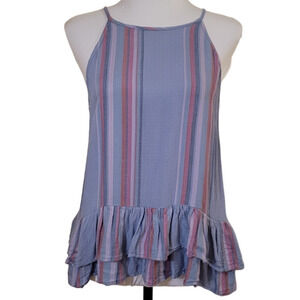 Ruffle Tiered Tank Top Beachy Coastal Stripes Vacation Boho Summer Cruise Size M