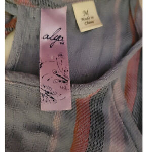 Blue & pink, vertical stripes, ruffle hem, spaghetti straps, keyhole tie closure in back, square neck