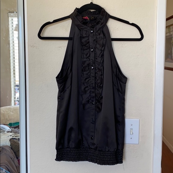Black, ruffle, sleeveless top