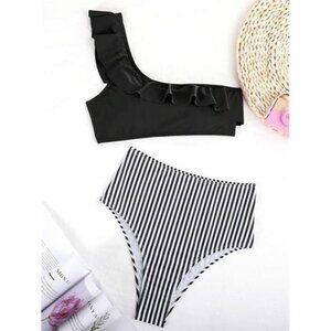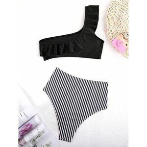 Ruffle Trim One Shoulder Bikini Swimsuit