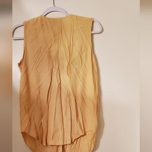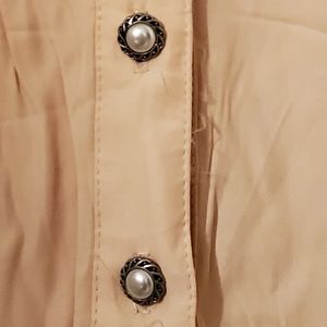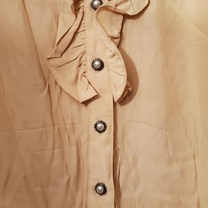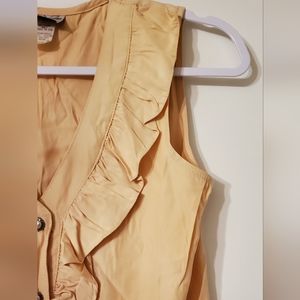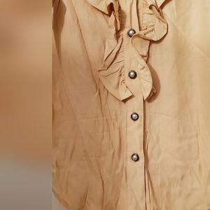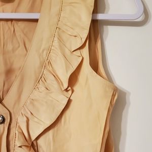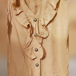 Ruffle V Pearl Buttons Women Sleeveless Shirt w Deep V Neckline