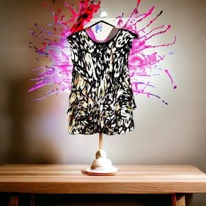 V-neck blouse with abstract design. Black, pink and yellow color with a zip up the back. Gently used and in great condition. Size Medium.