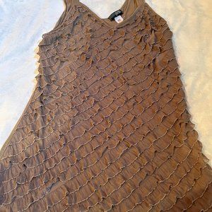 Tan/dark khaki camisole with pretty ruffle details make this a fun shirt to wear out dancing or to dress up a pair of jeans with a boyfriend style blazer.