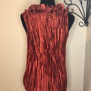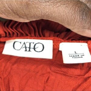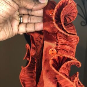 Cato ruffle front button down top. Fabric has a sheen for shiny look. Burnt/deep orang color. Good condition pit to pit 18in, length 25in.⭐️⭐️