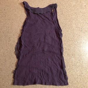 Purple ruffle sleeveless top. Perfect work wear. Some ruffles are sheer, some are not. Cotton back.