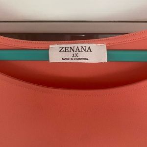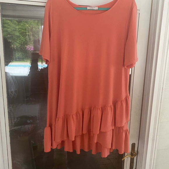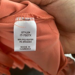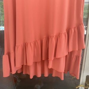 Coral colored asymmetrical ruffle top. Material is very stretchy and soft
