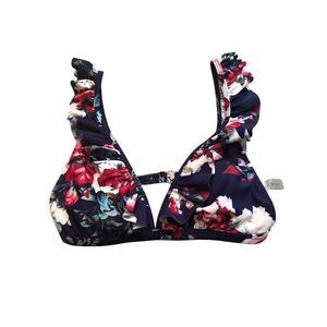 Ruffle v neck bikini on sale, Layered Ruffle Boho Printed Deep V String Bikini Two Piece size S. Floral print with snap back closure. Has padding inserts m.