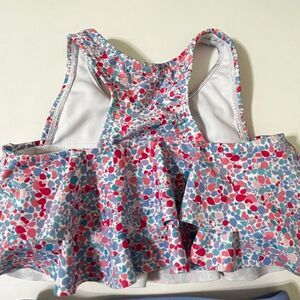 RuffleButts Flounce Bikini Swimsuit Sparkle Shimmer Girls Size 12-18 Months. Adorable two piece bikini set with a pretty shimmer to the top and bottom. Solid bottoms with a multi color top. Racerback ruffle top with tush ruffles on the bottoms. Excellent Used Condition.