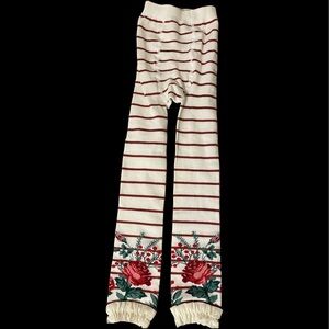 RuffleButts Girls Footless Ruffled Tights floral striped white burgundy