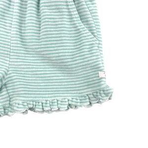 RuffleButts Girls Melon Green White Striped Terry Knit Ruffle Hem Shorts 6