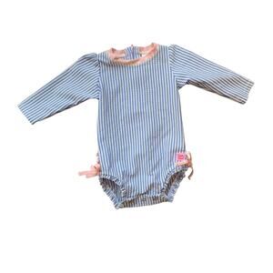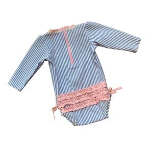 Periwinkle Blue and white seersucker stripe one piece bathing suit or rashguard with long sleeves