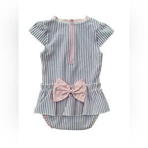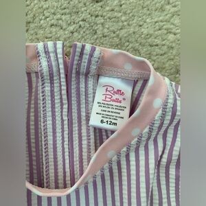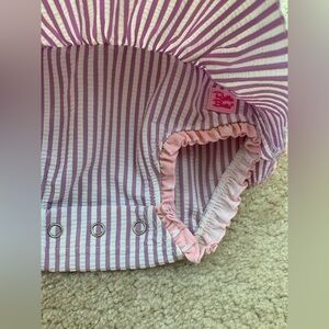 Ruffle Butts size 6-12 months purple and white stripes seersucker one piece peplum swimsuit.