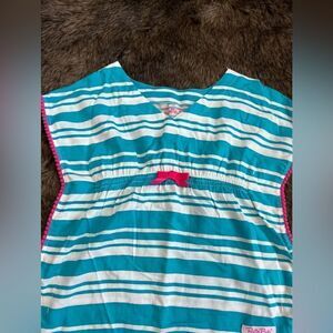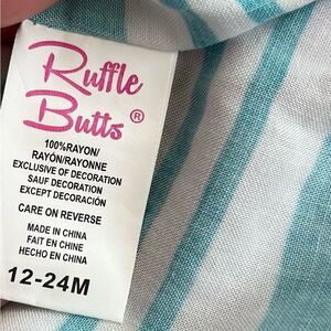 RuffleButts Turquoise White Pink Stripe Kaftan Kimono Swim Coverup Sz 12-24 Mo