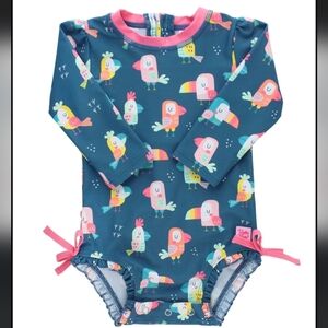 RuffleButts You’re The Tweetest size 6-12 months Rash Guard Swimsuit