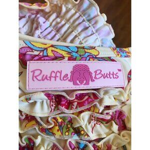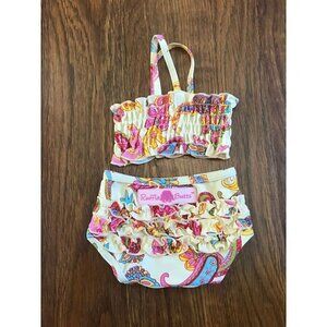 Ruffle Butts size 3-6 mos yellow paisley print, ruffle butt bottom, smocking bikini top two piece swimsuit set