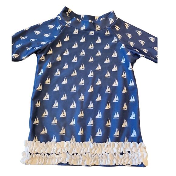 Ruffle Butts Nautical Blue White Sailboat Rashguard Swimsuit Bathing Top 18-24M