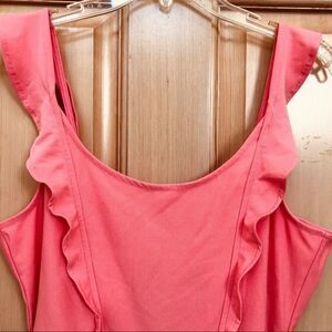 Ruffle Straps Coral Romper With Back Ties