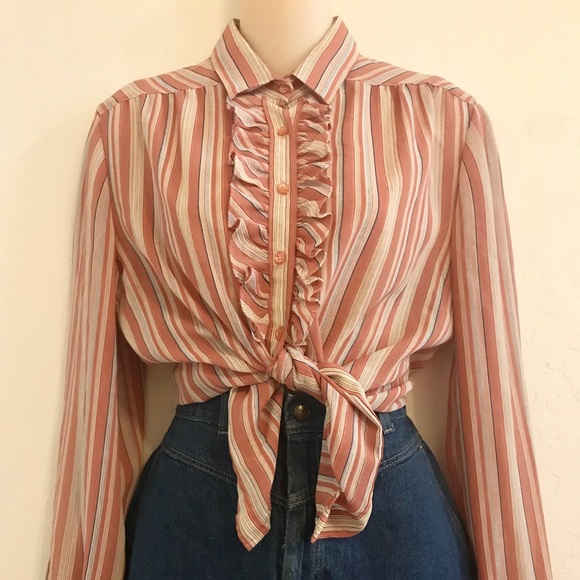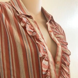 ALL ORDERS SHIPPED 12/8! Flowy, striped, ruffled, and all the buttons! This blouse is amazing and can be worn in so many ways!
