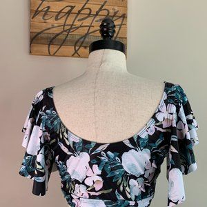 Ruffled Bikini Top Sexy Flounce Swimwear Women Swimsuit Floral V-neck Top Size L