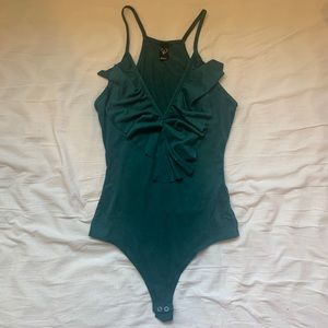 Stretchy, suede-like material. In great condition; never worn, but doesn’t have a tag