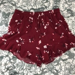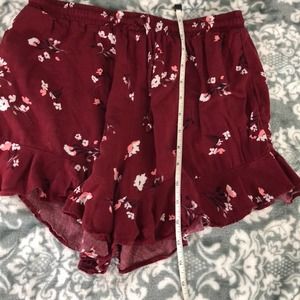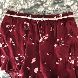 Super cute high waisted shorts with ruffle. In good condition. Elastic waist with tie. These would be adorable (and comfortable) for those hot summer days!