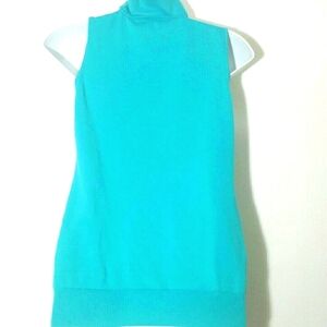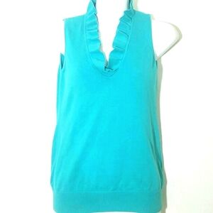 XS like new Ann Taylor Loft turquoise aqua blue sleeveless knit tank top ruffled collar