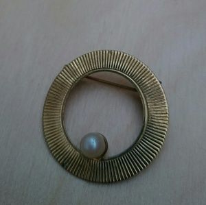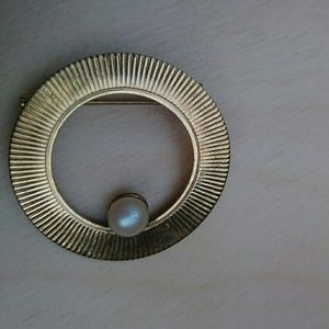 Gold-leaf ridged circle PIN with pearl centerpiece. 🔮 Consider pairing with the other "Ruffled Gold" listing to get a special discount 😄