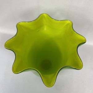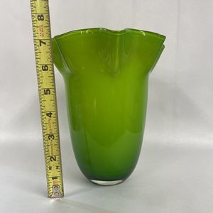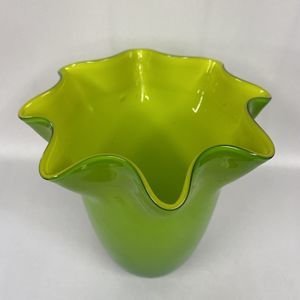 Ruffled Handkerchief Art Glass Large Vase Double Green Lime 7 In Tall - Read
