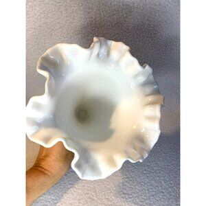 Ruffled Hobnail White Milk Glass Trumpet Vintage Vase 8"