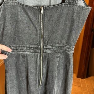 Ruffled Jumpsuit Wide Leg Washed Black Denim Size Small