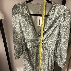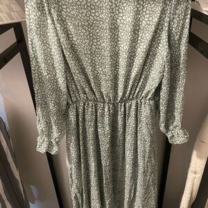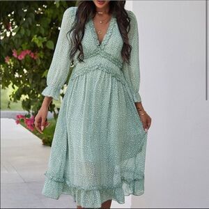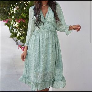 Ruffled Long Sleeve Green and White Dress