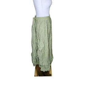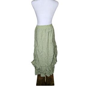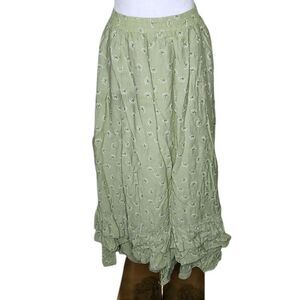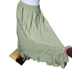 Ruffled Maxi Skirt Womens 3XL Green Tiered Femme Floral Ruched Milkmaid Cottage