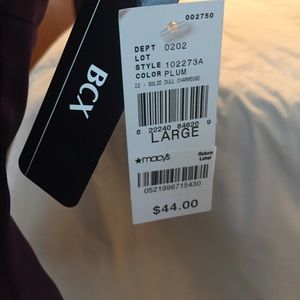 Beautiful, satiny, eggplant-colored dressy shirt with ruffled v-neck detail. Never worn, with tags!