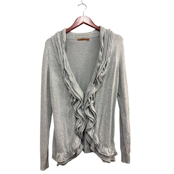 Ruffled Open Front Cardigan Sweater By Belldini S Viscose & Nylon Blend Light Gr